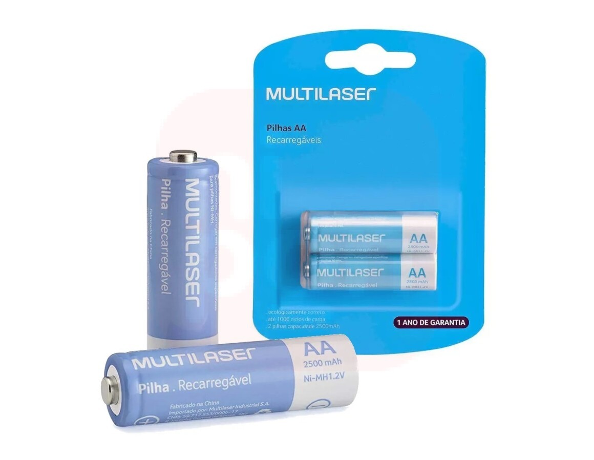 Pilhas Recarregáveis AA Multilaser 2500Mah Com 2 Unidades - CB053