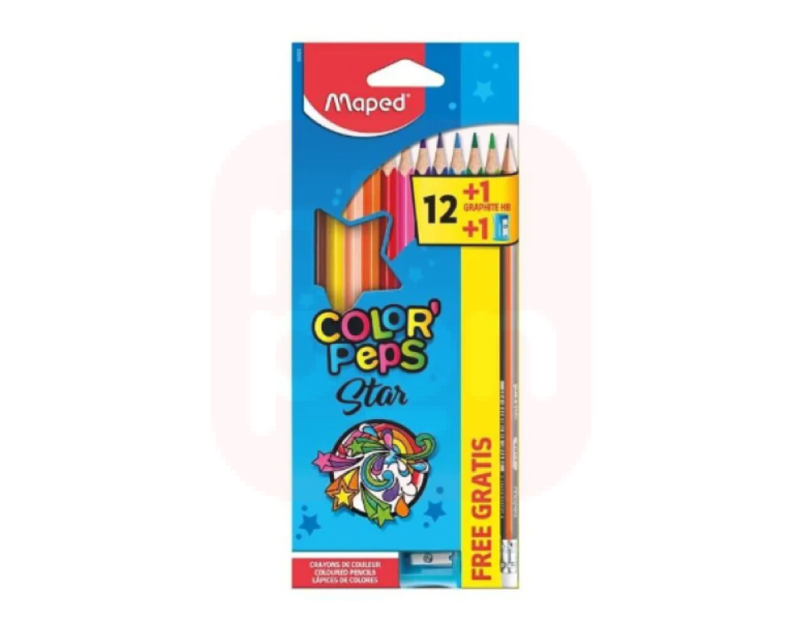 Dê vida às suas criações com o Lápis de Cor Maped Color’Peps 12 Cores + Apontador + Borracha!