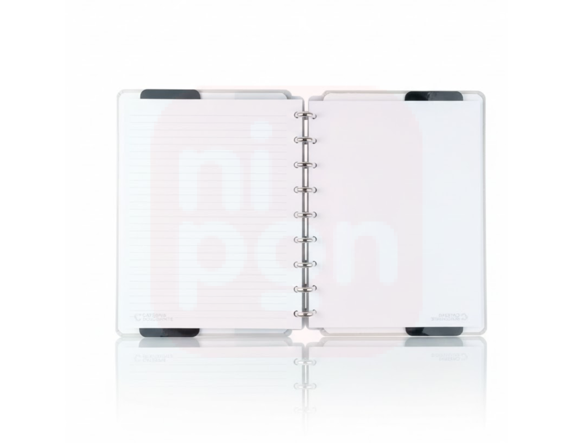 O sistema discbound permite tirar, reorganizar e adicionar folhas sempre que quiser, mantendo tudo personalizado do seu jeito.