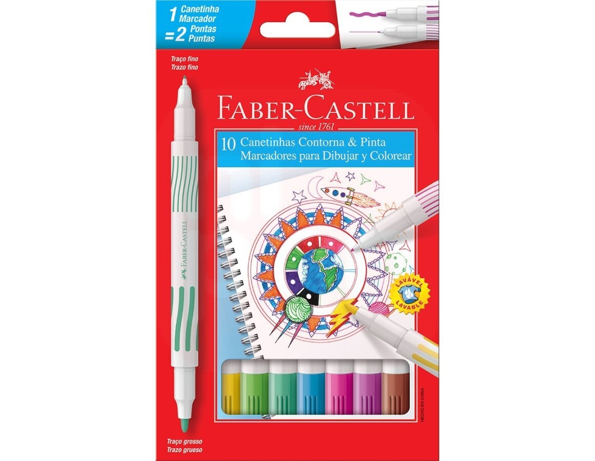 2. Canetinha Hidrográfica 10 Cores 2 Pontas - Faber-Castell