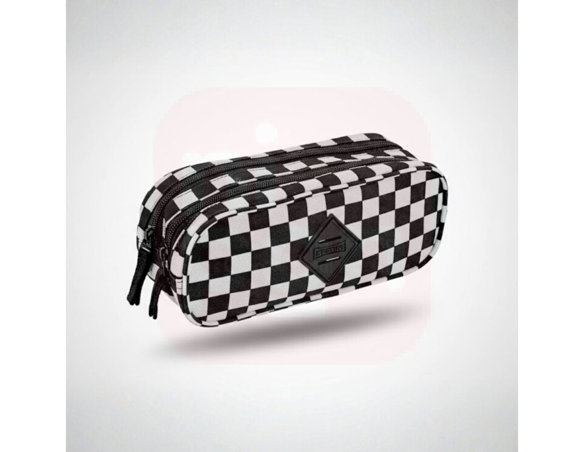 Estojo 2 Compartimentos Xadrez Preto e Branco - Sestini