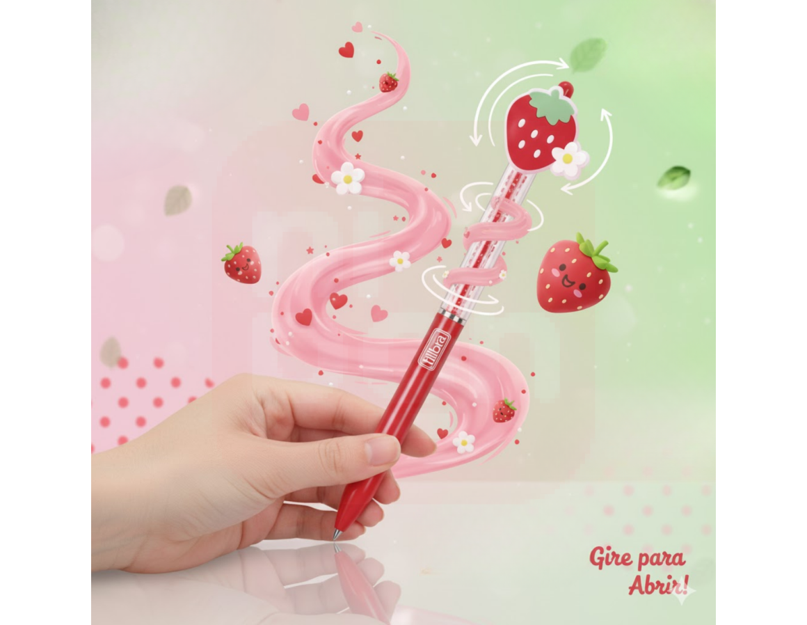 2. Caneta Esferográfica Retrátil 0.7mm Be Berry Morango - Tilibra