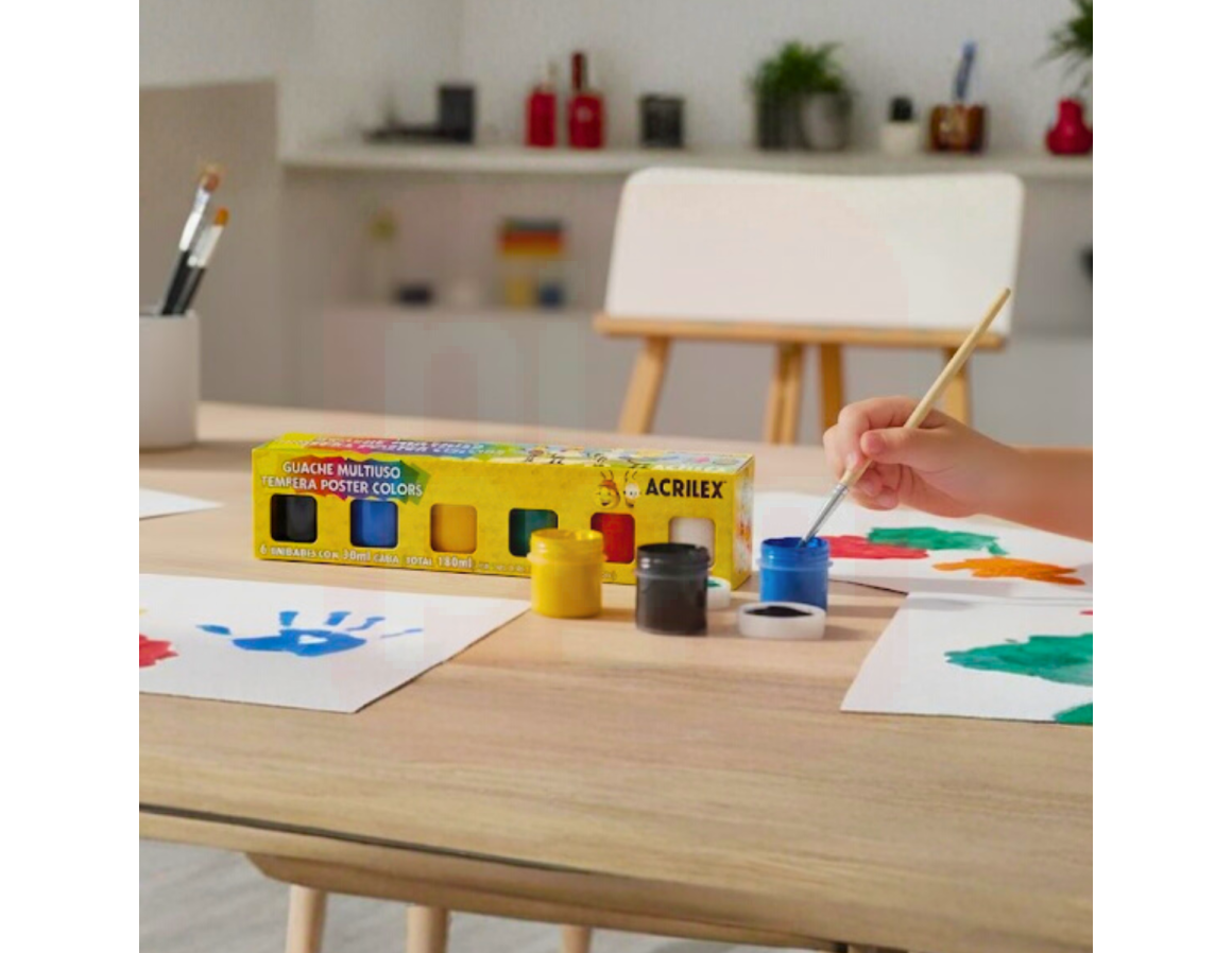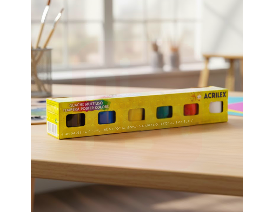 Tinta Guache Multiuso Têmpera Poster Colors 30ml com 6 Cores – Acrilex